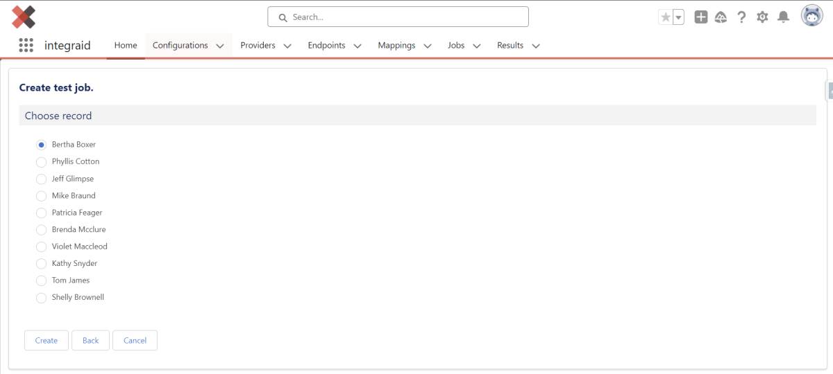 The interface for configuring and using integraid consists exclusively of native Salesforce components. You will find the following tabs in the application: